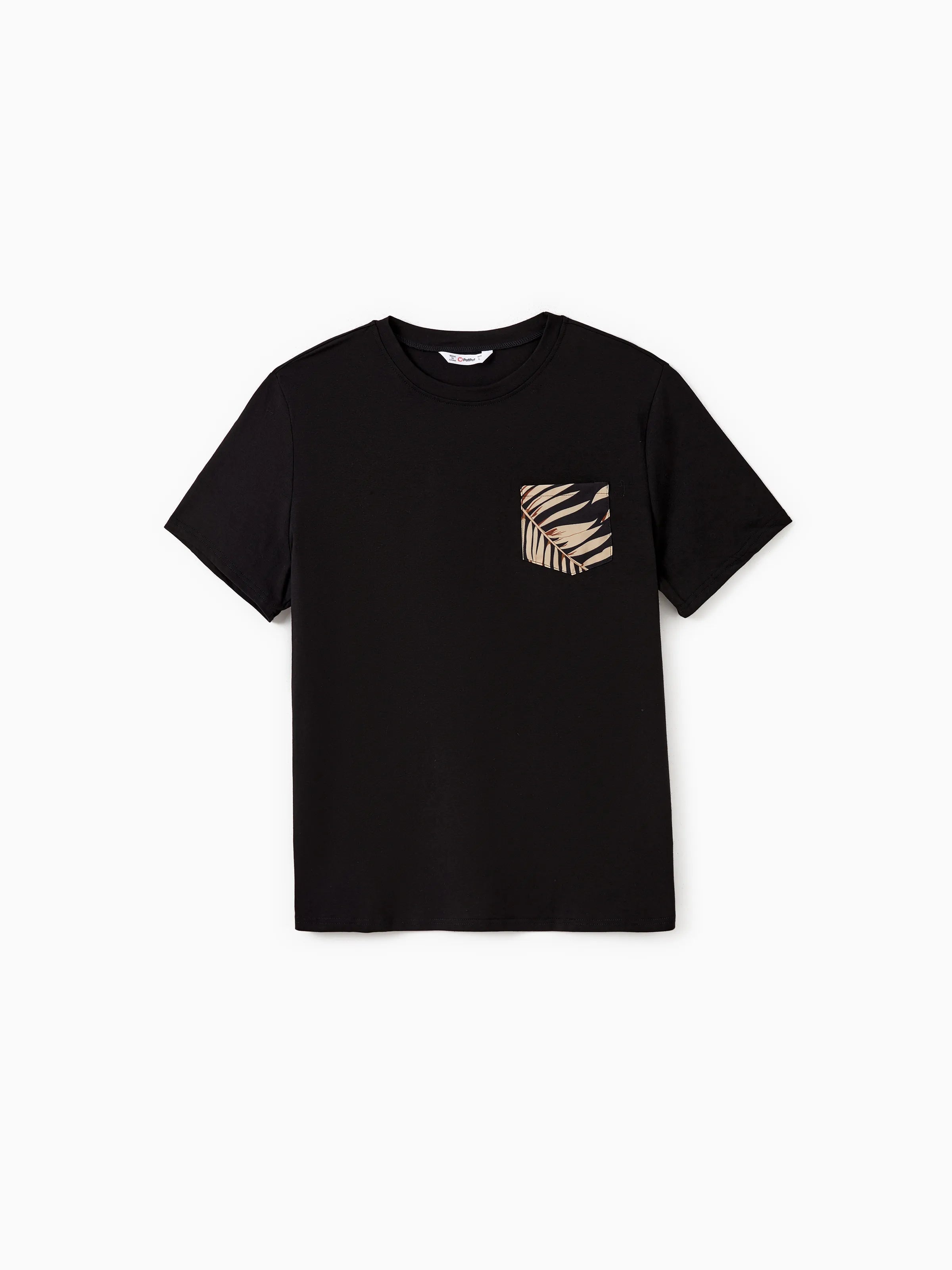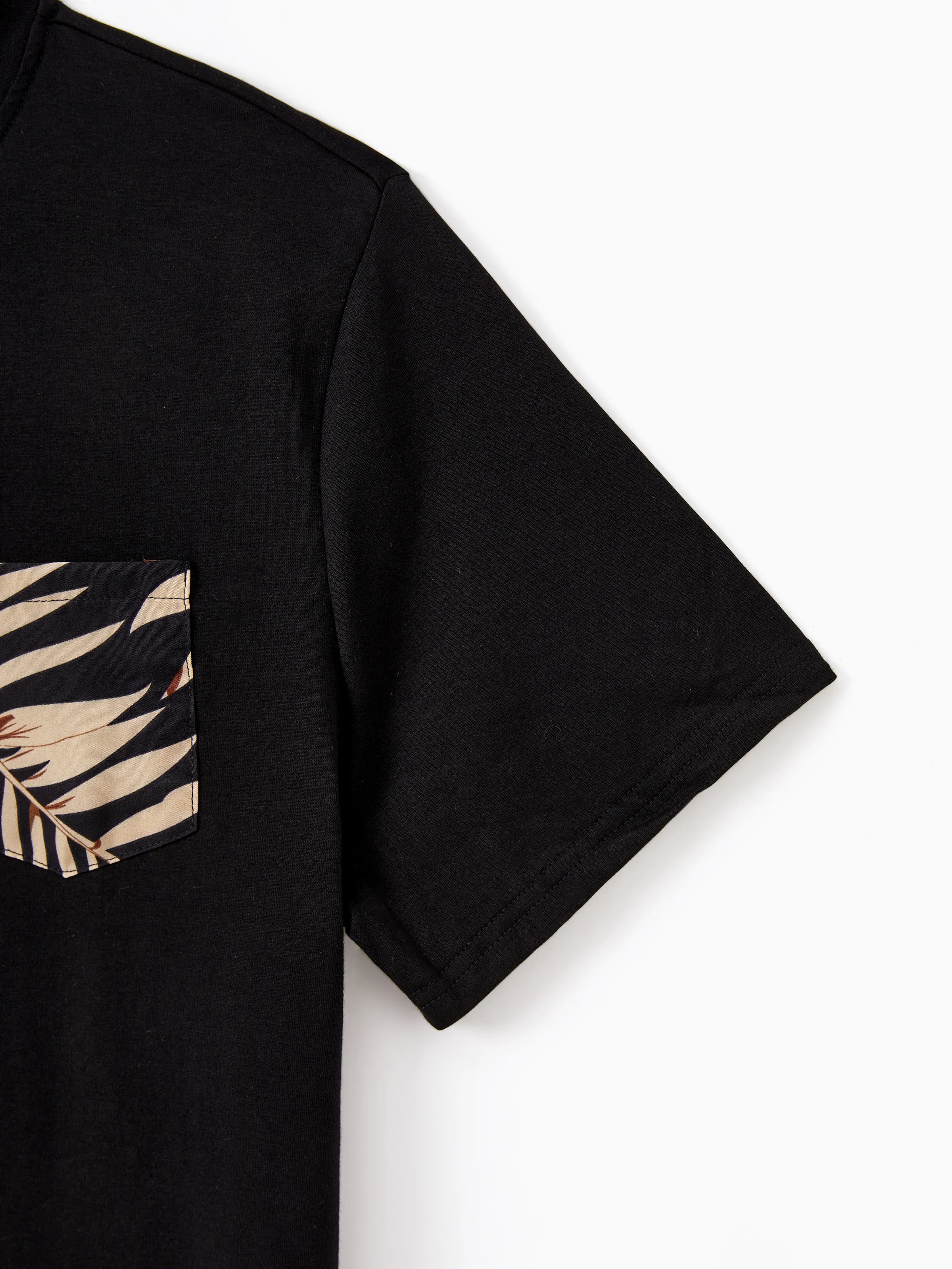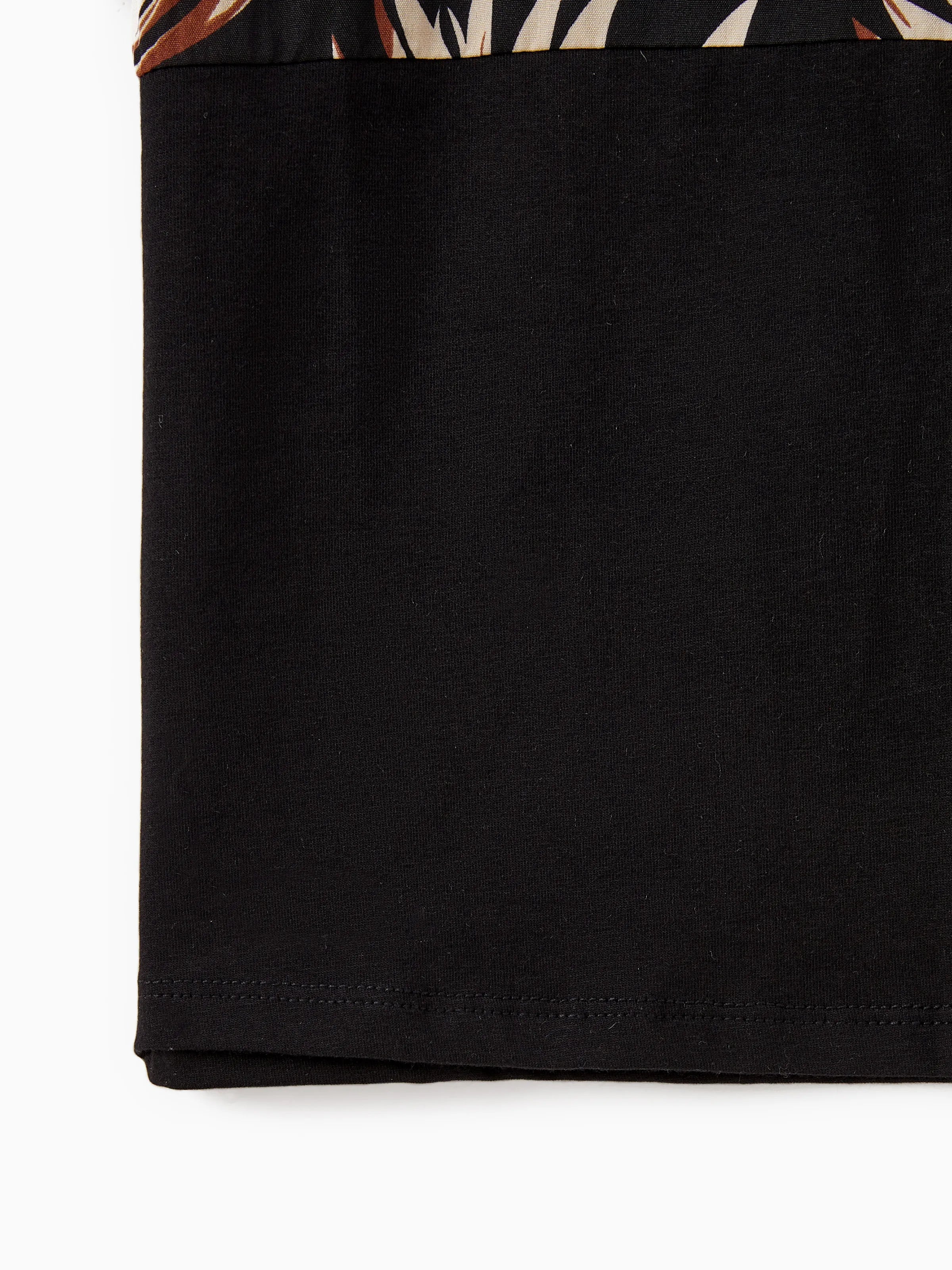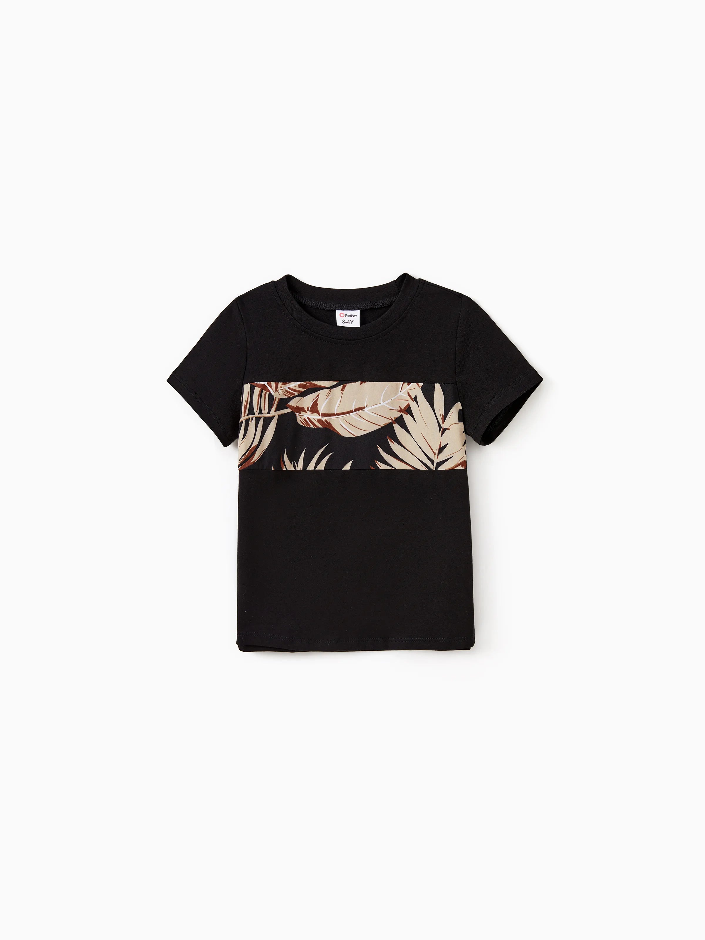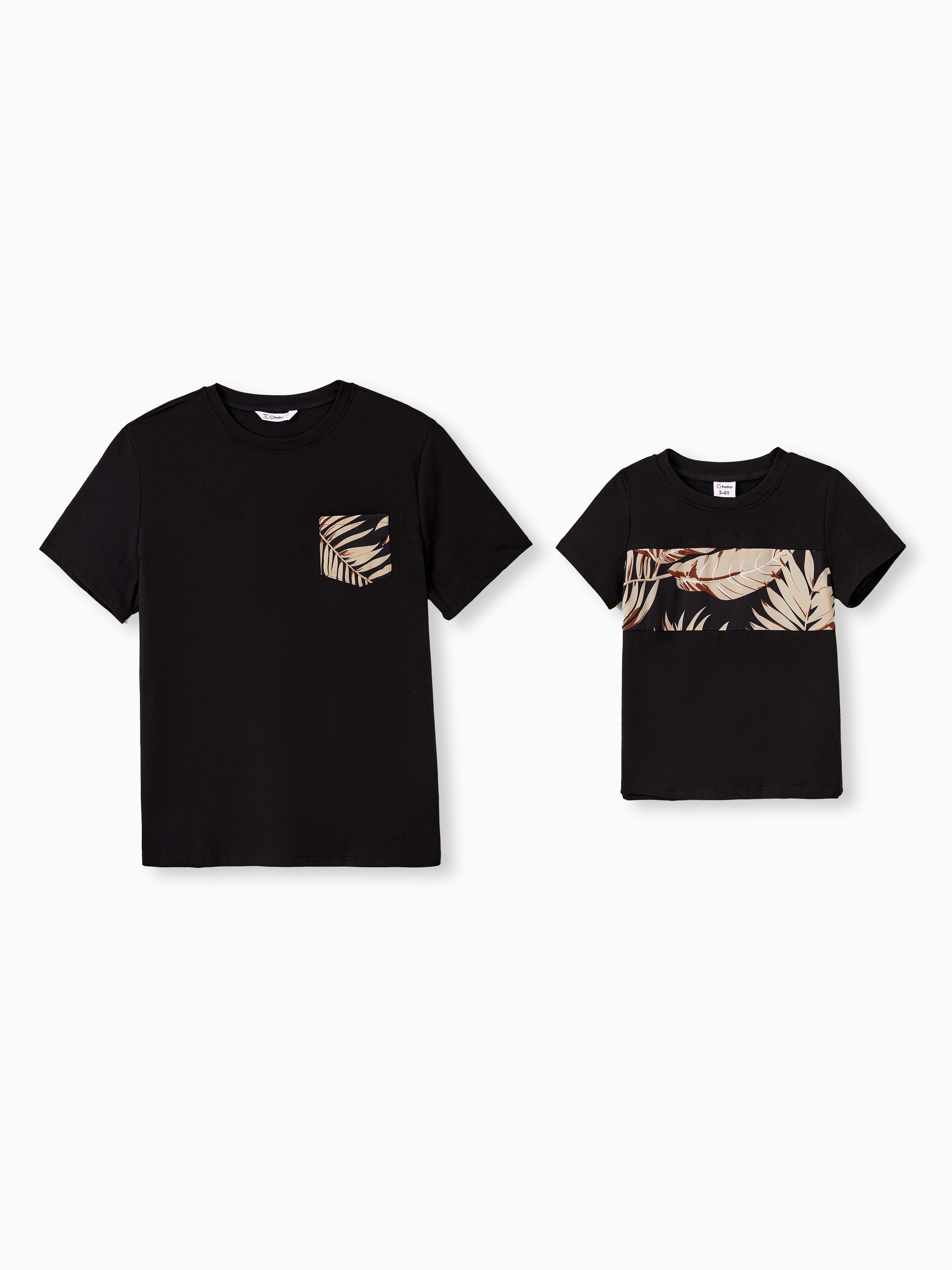 Daddy and Me Family Matching Floral Print Belted Cami Dresses And Solid Short Sleeve Tops Sets Black