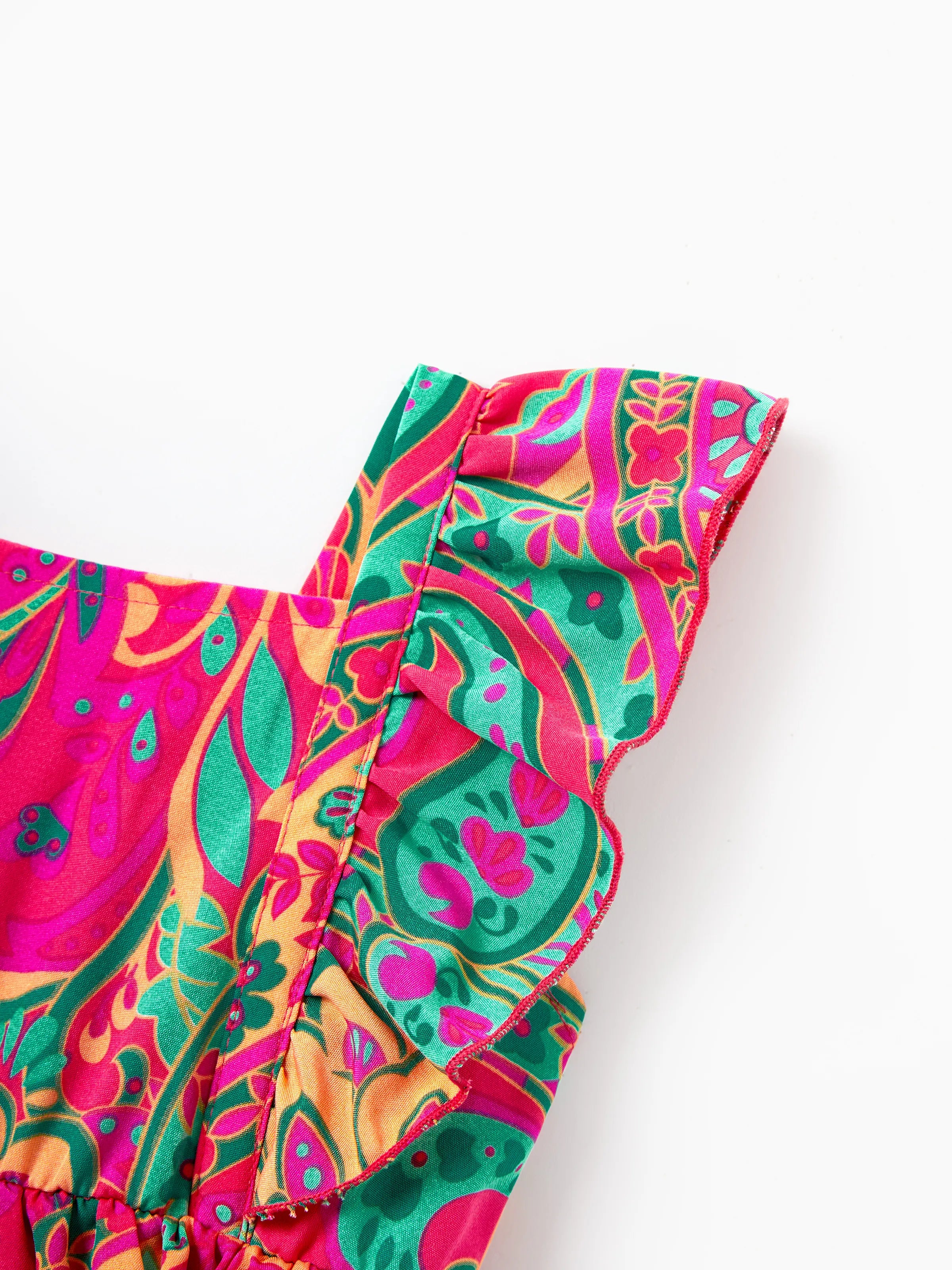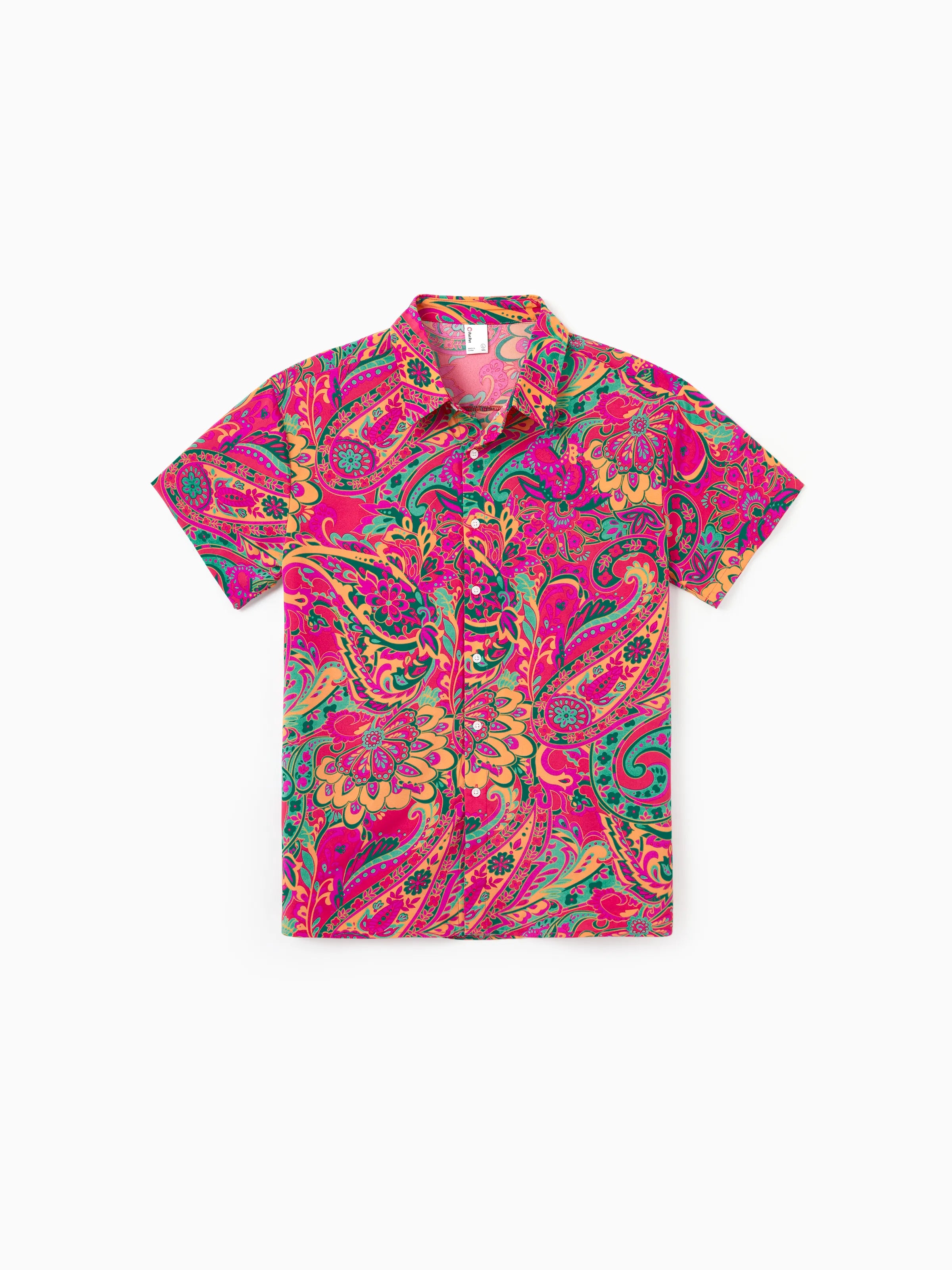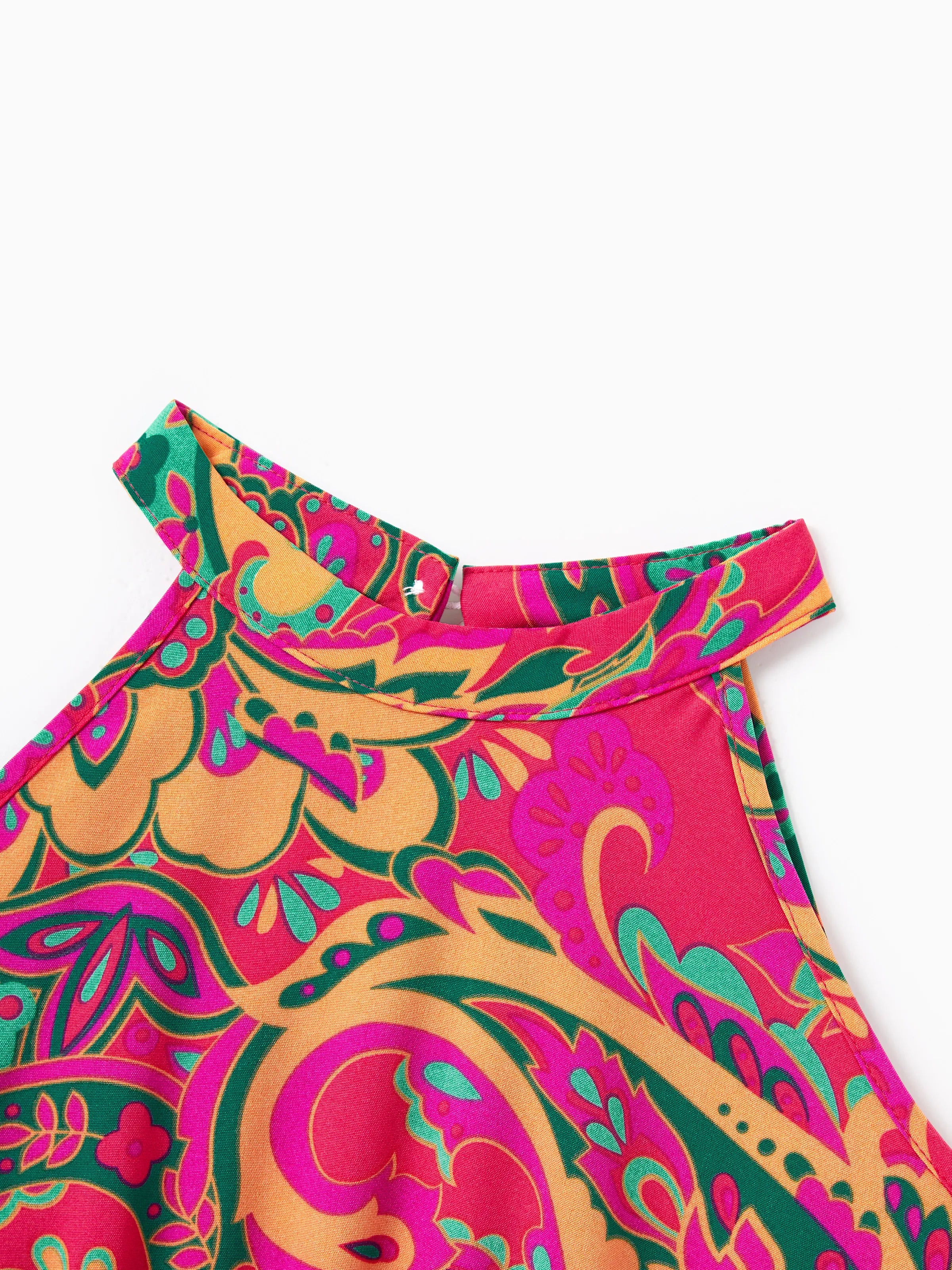 Daddy & Daughter Outfit Set Sleeveless Halter Belted Dress or Short-sleeve Collar Shirt for Summer Vacation Hot Pink