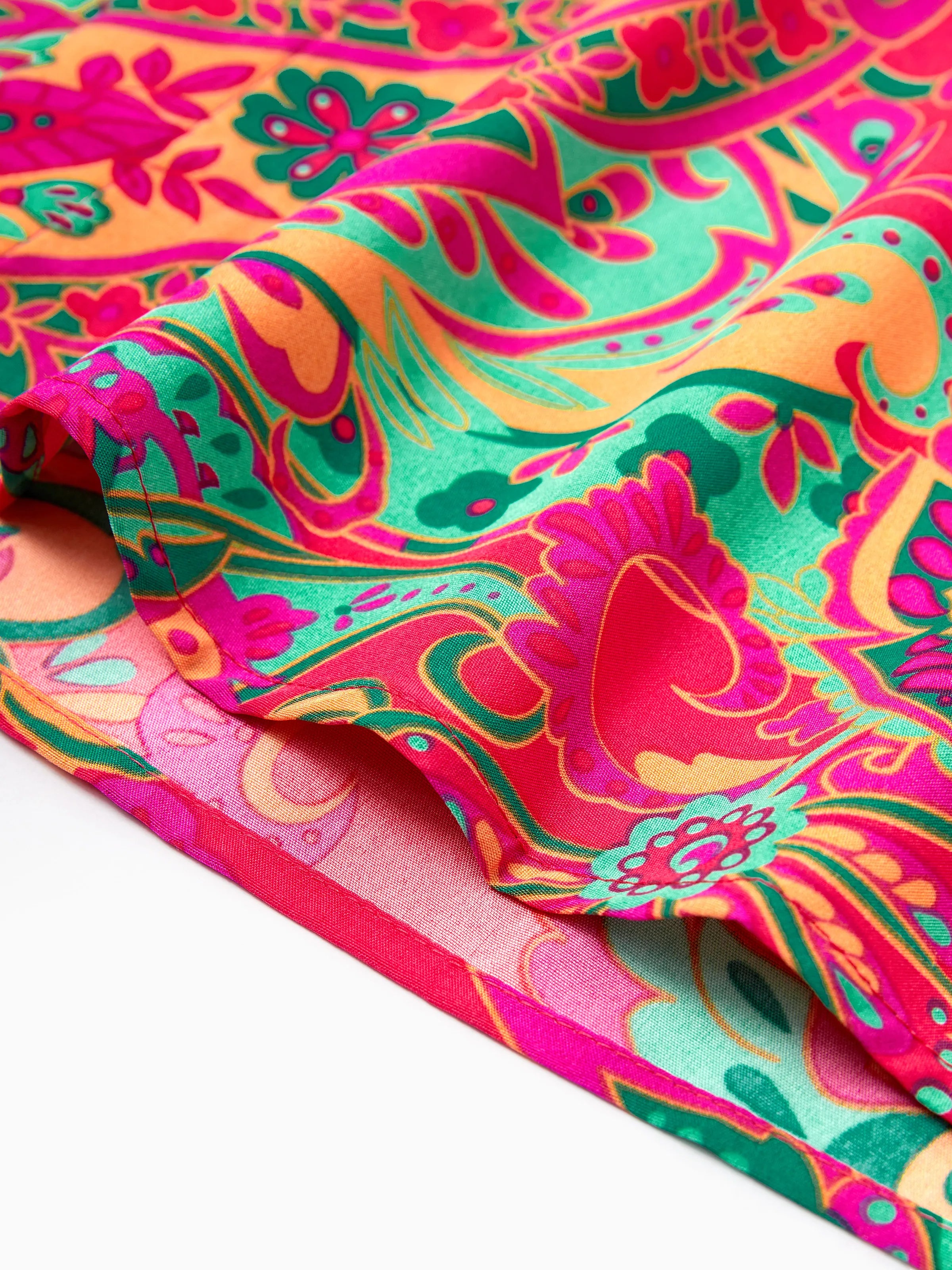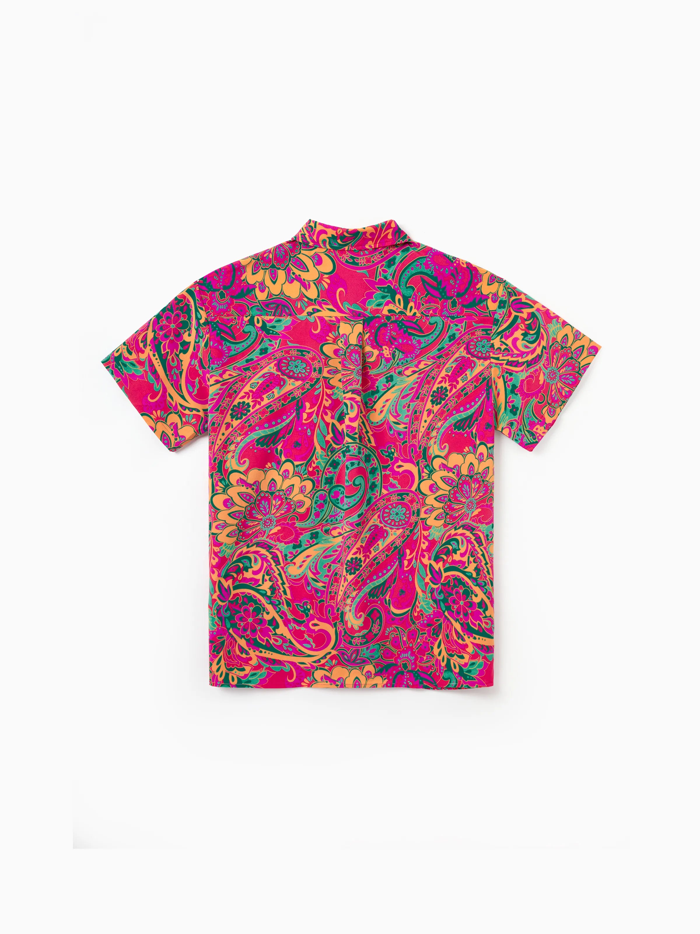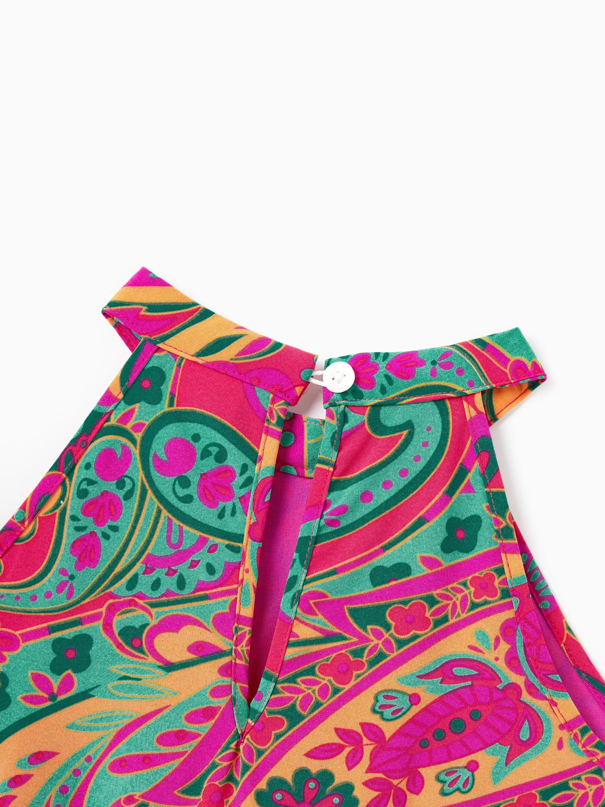 Daddy & Daughter Outfit Set Sleeveless Halter Belted Dress or Short-sleeve Collar Shirt for Summer Vacation Hot Pink