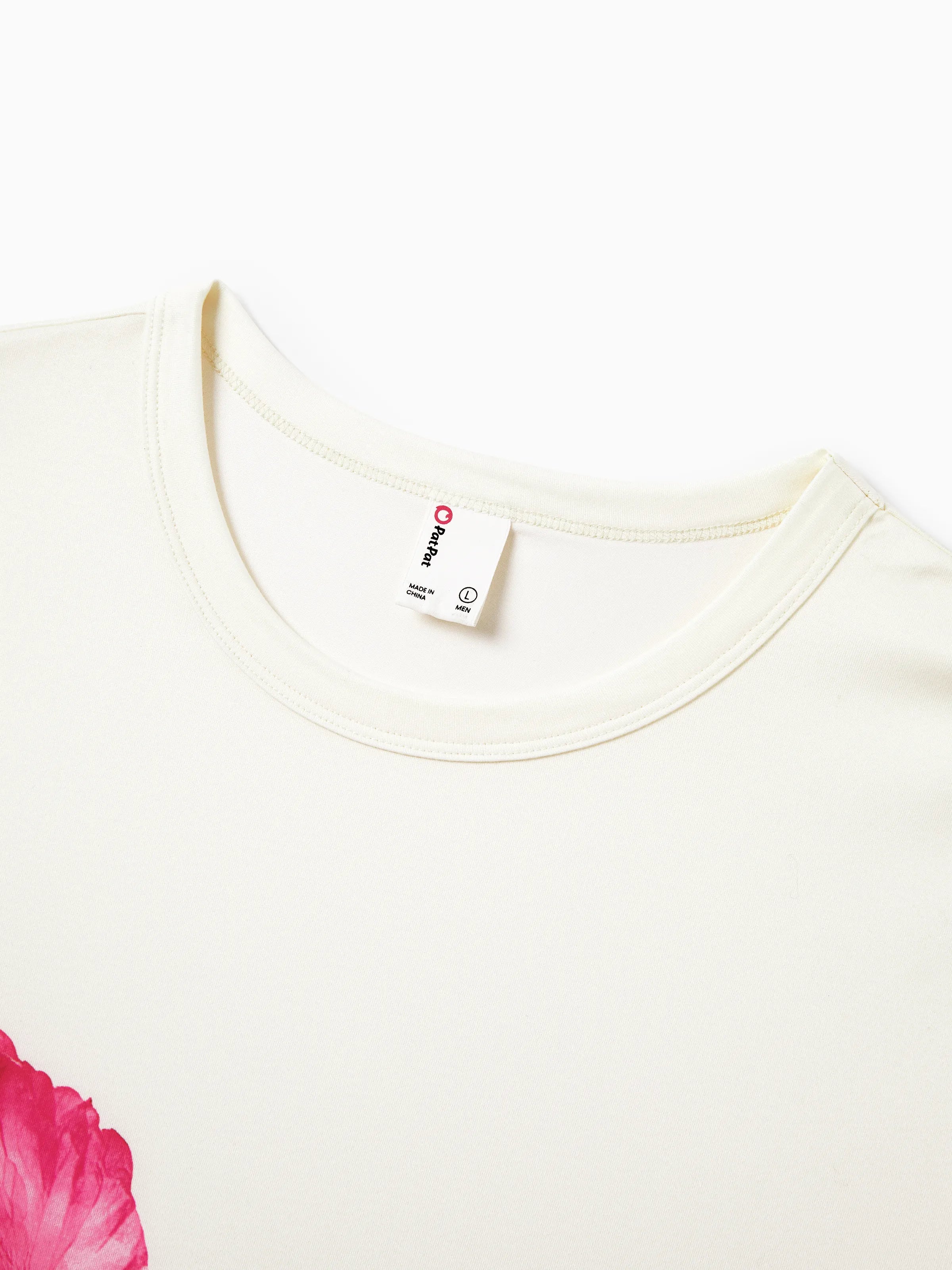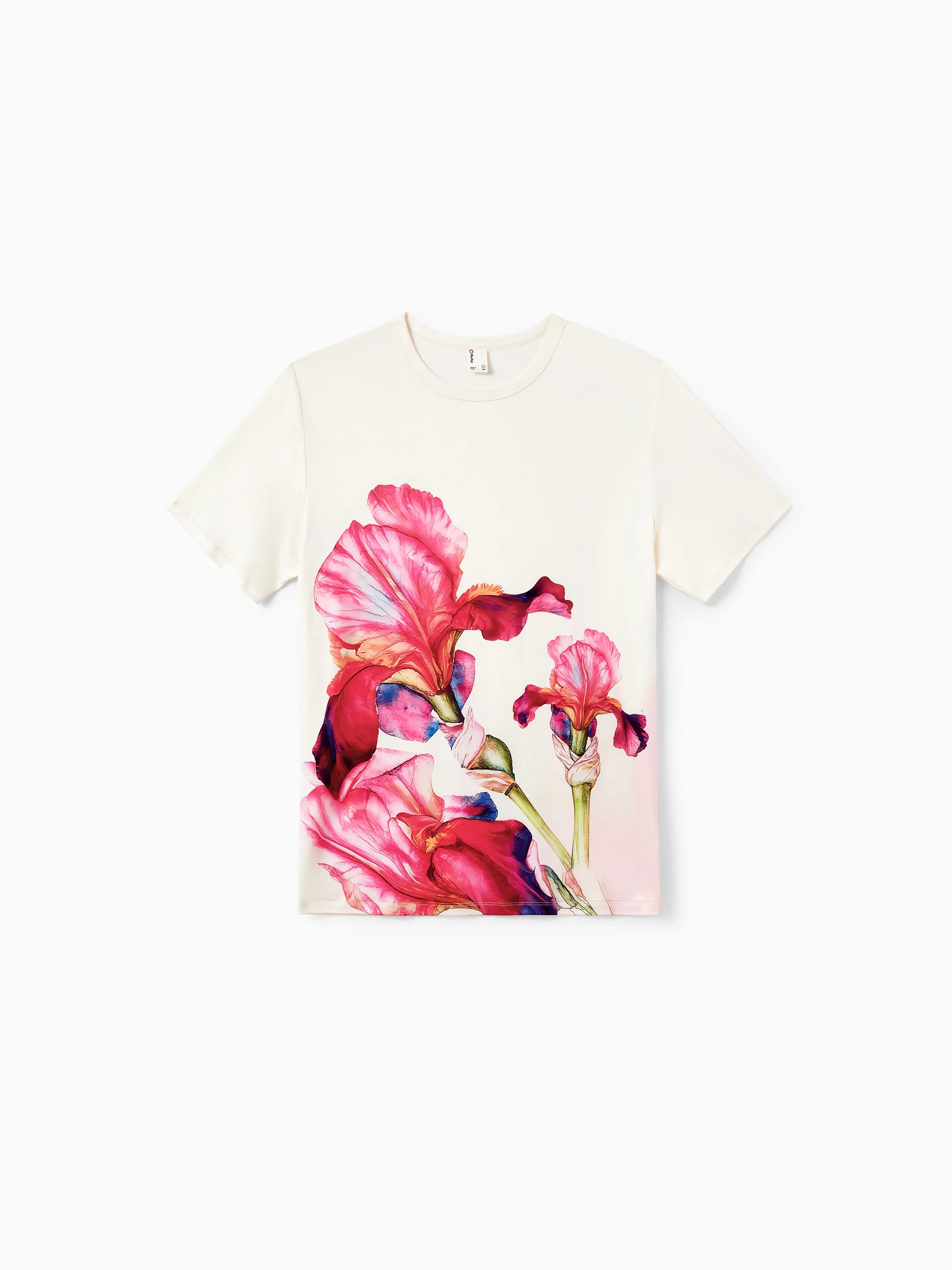 Daddy & Son Casual Outfit Floral Print T-shirt or Halter Dress Summer Set for Vacation Apricot