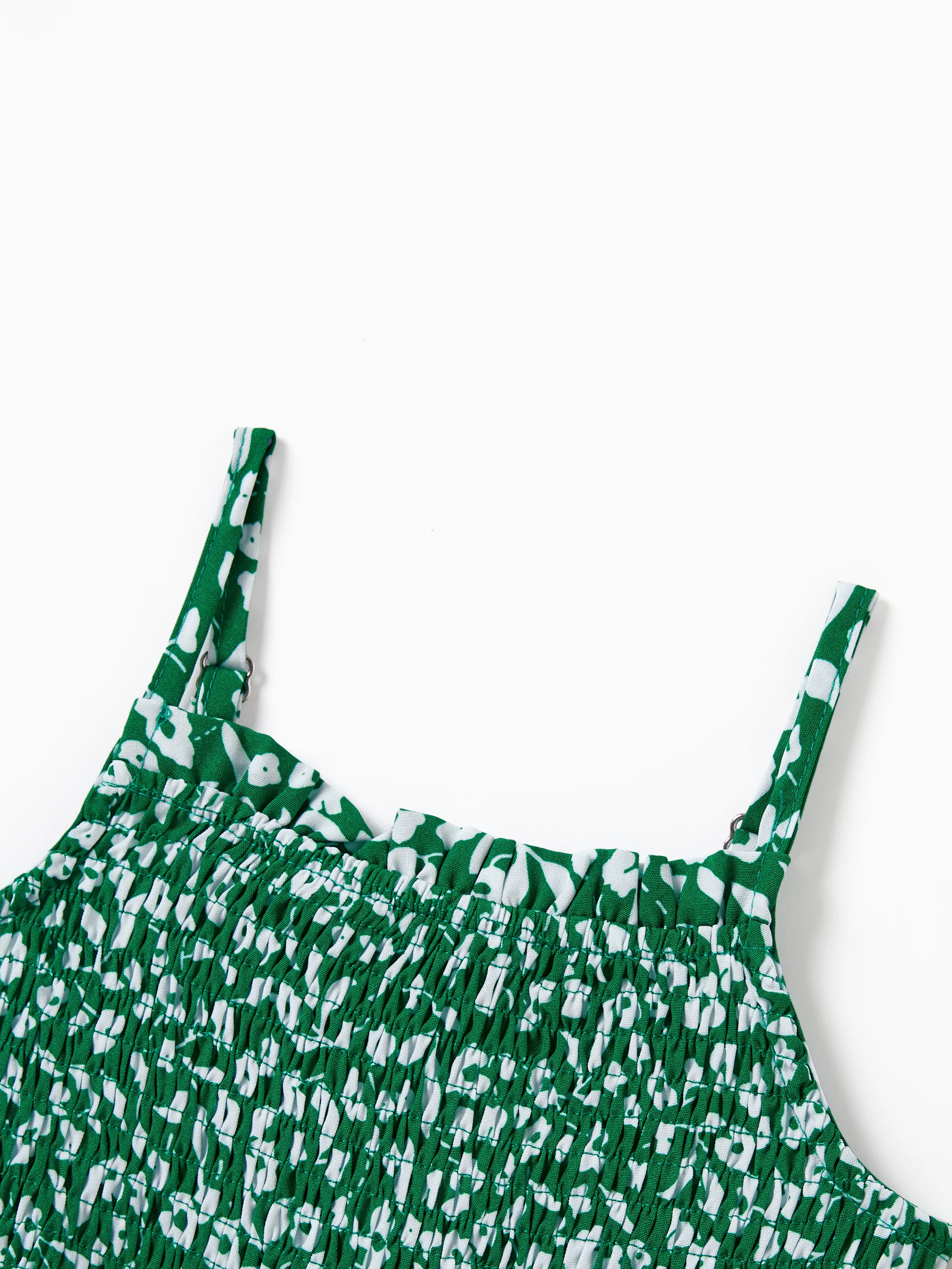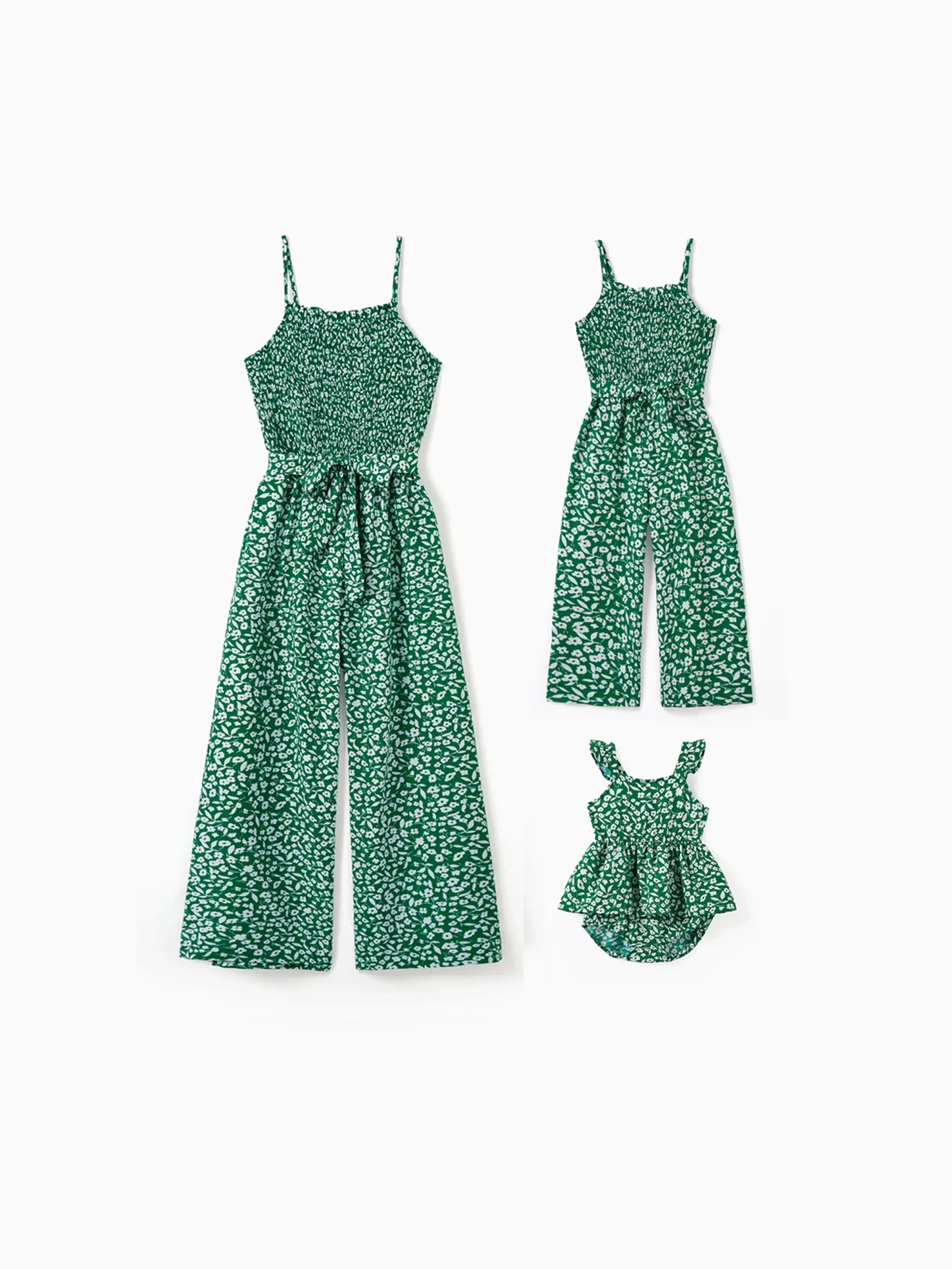 Toddler/Kid Girl Floral Print Green Smocked Strap Jumpsuits Green