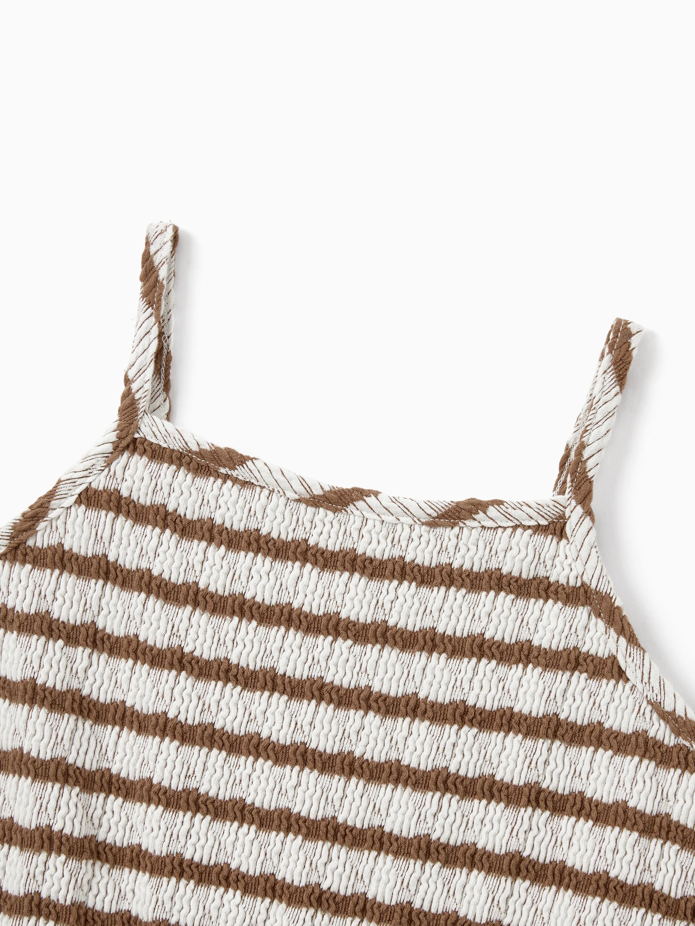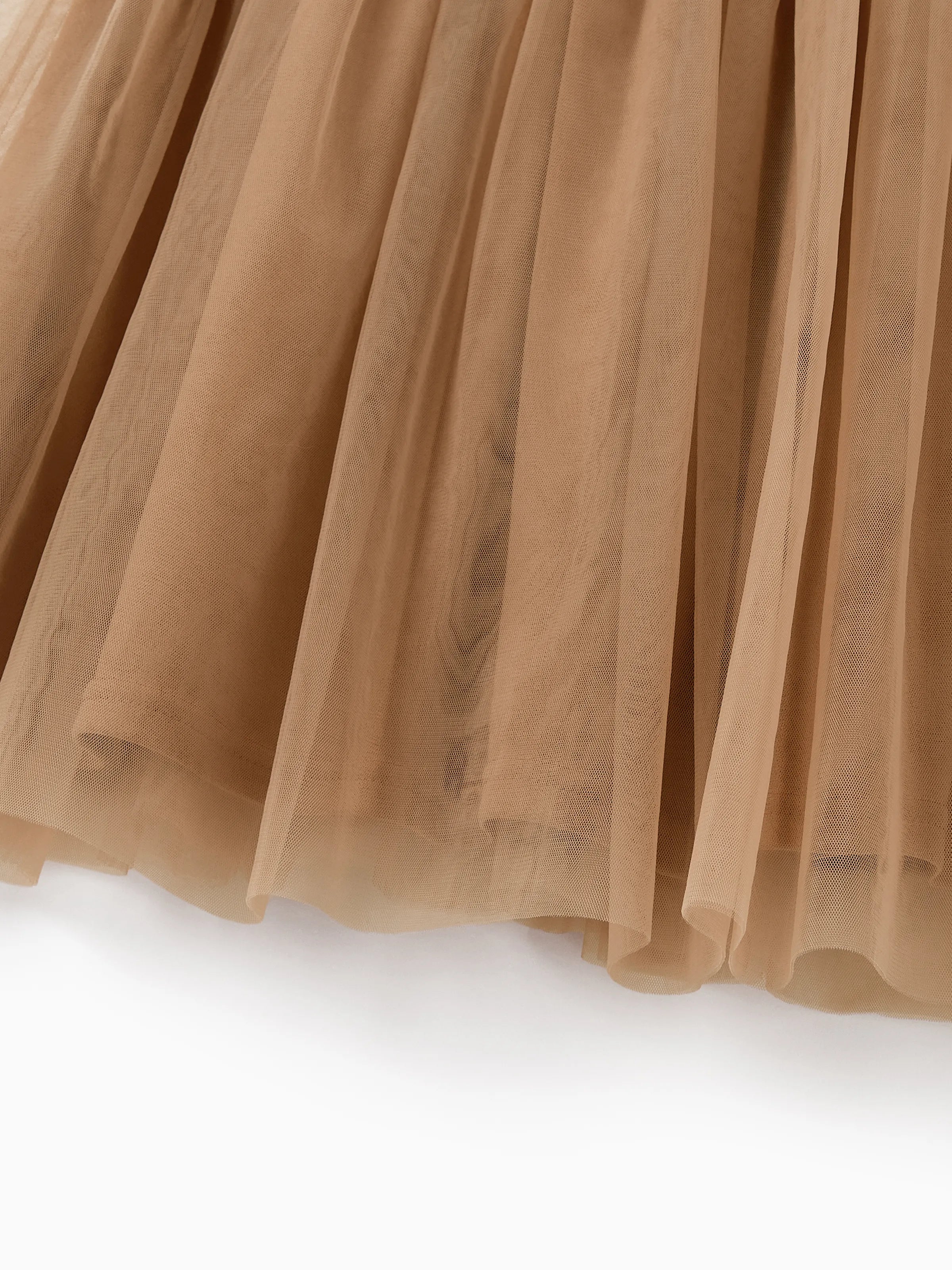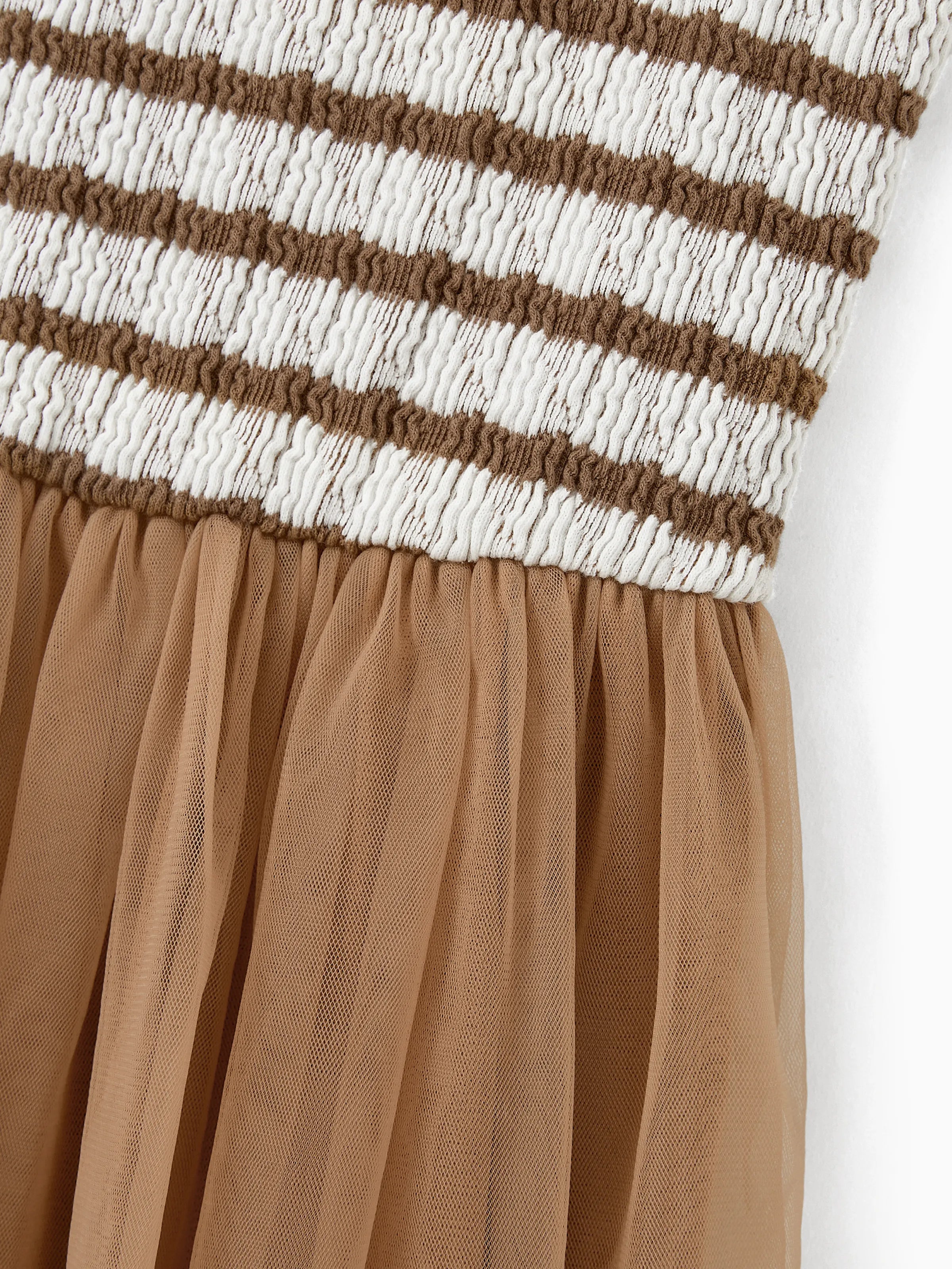 Toddler/Kid Girl Striped Twist-Front Dress with Tulle Skirt, Perfect for Summer Family Outings & Photos Khaki