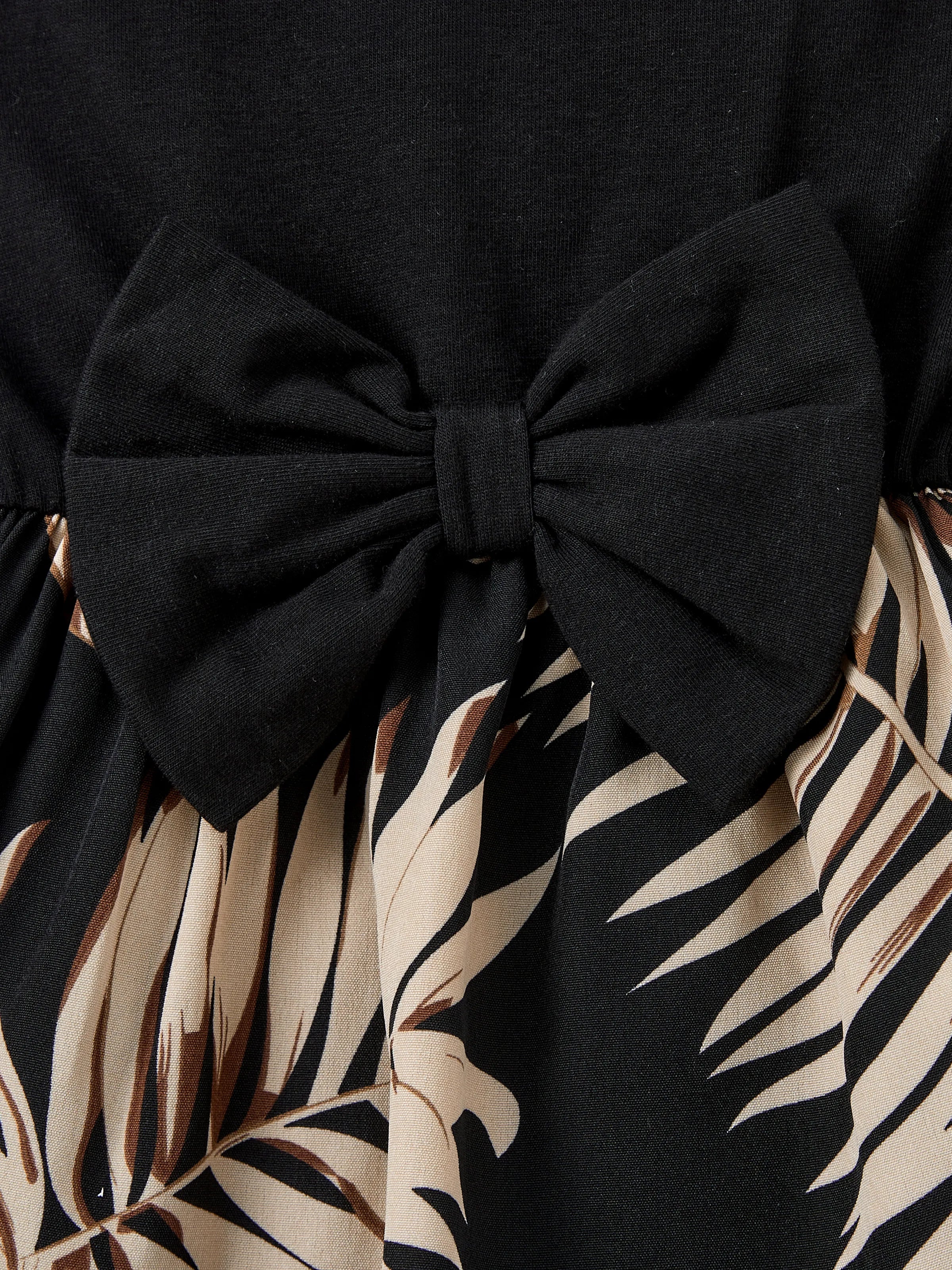 Mommy and Me Family Matching Floral Print Belted Cami Dresses And Solid Short Sleeve Tops Sets Black