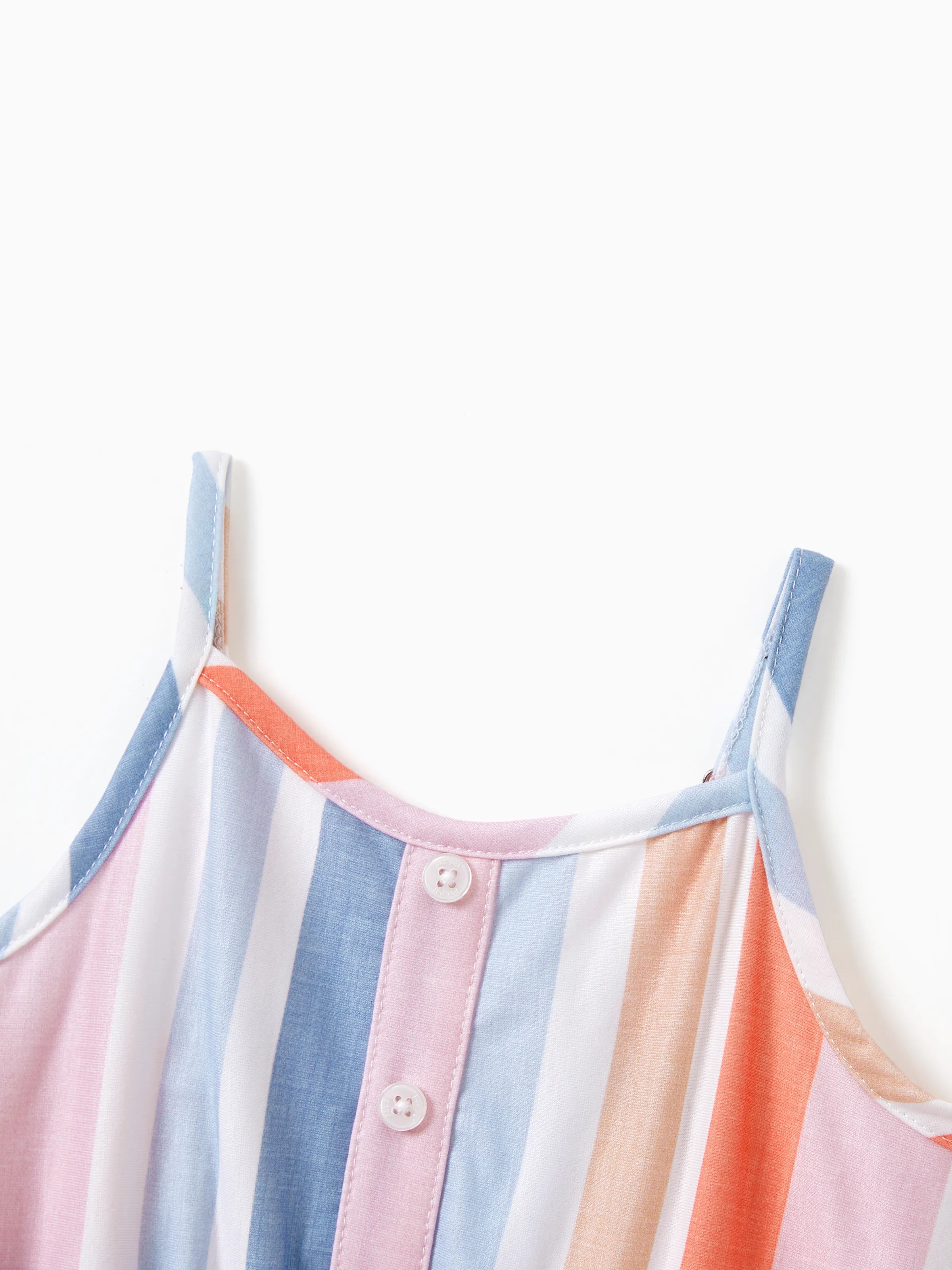 Toddler/Kid Girl Colorful Stripe Camisole Belt Dress Multi-color
