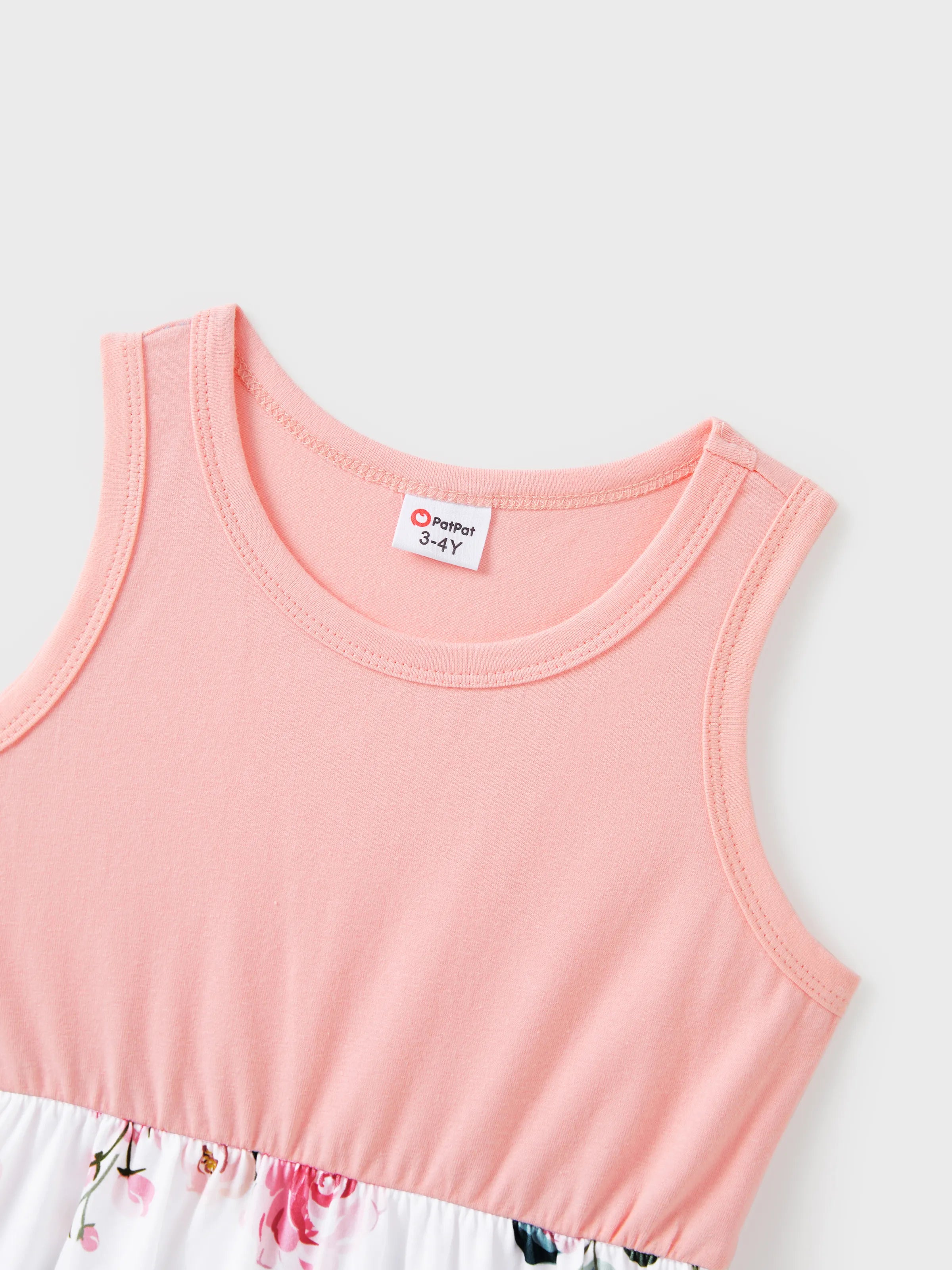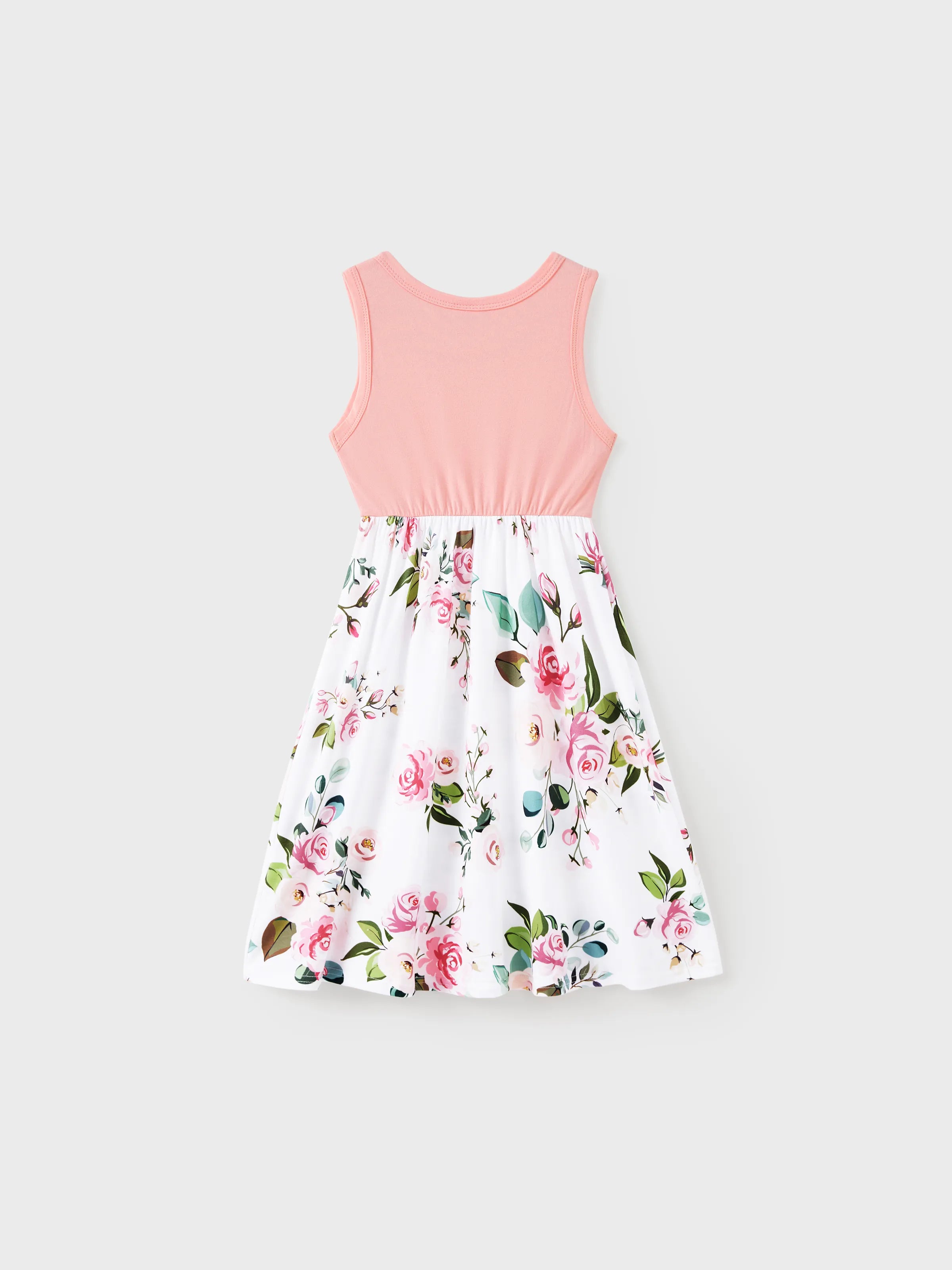 Toddler/Kid Girl Pink Sleeveless Splicing Floral Print Midi Dresses Pink