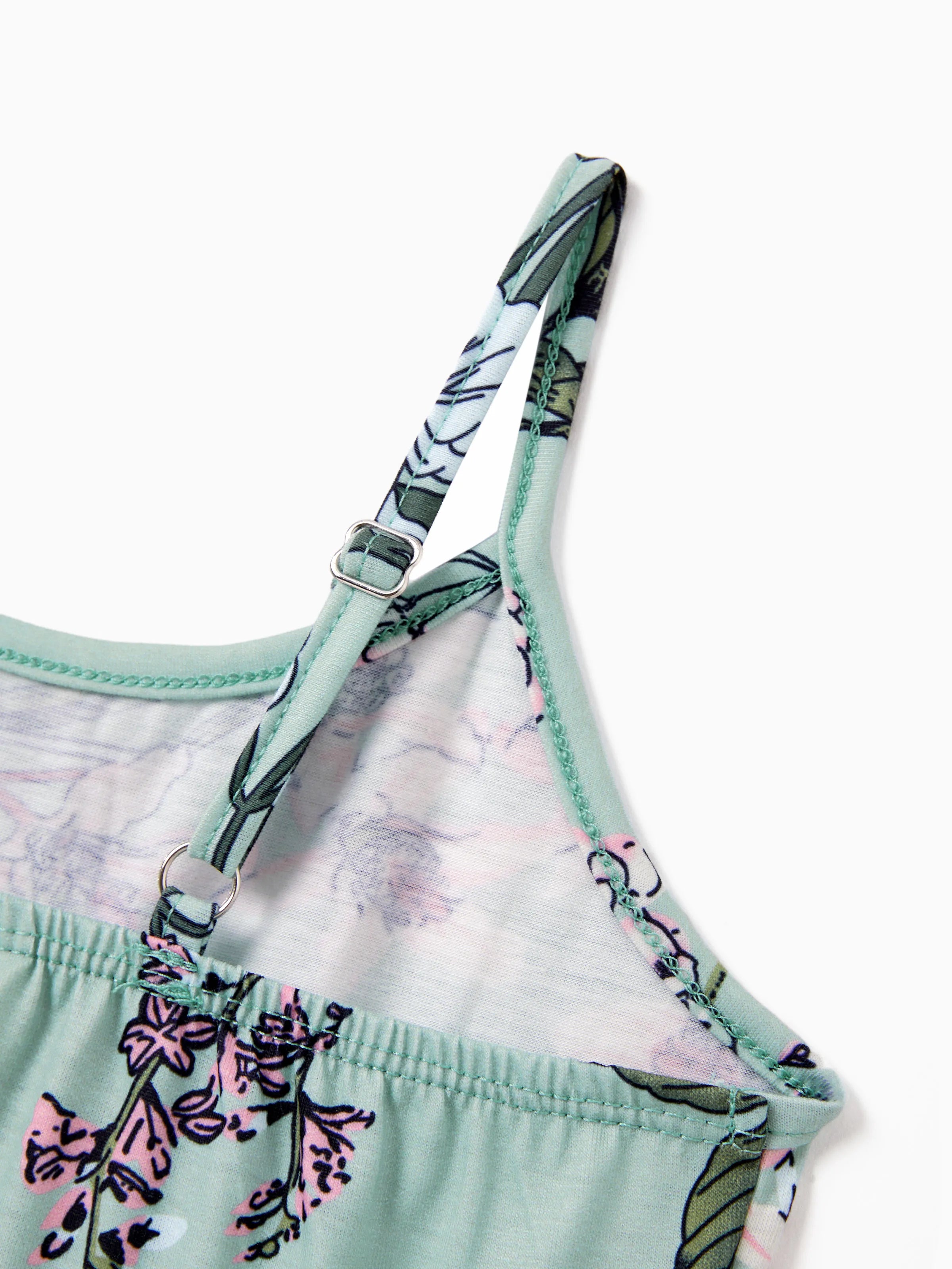 Toddler/Kid Girl Sets Flora Print Strap Belted Dress Light Green